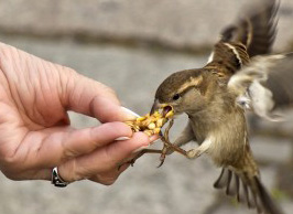 Los días que siguieron y, casi a la misma hora, aparecía el pajarillo, que ya familiarizado con María y Manuel, llegaba hasta ellos, comiendo confiado de sus manos, las migas de pan que le ofrecían.